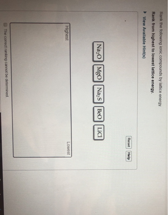 Solved Rank The Following Ionic Compounds By Lattice Energy Chegg Com